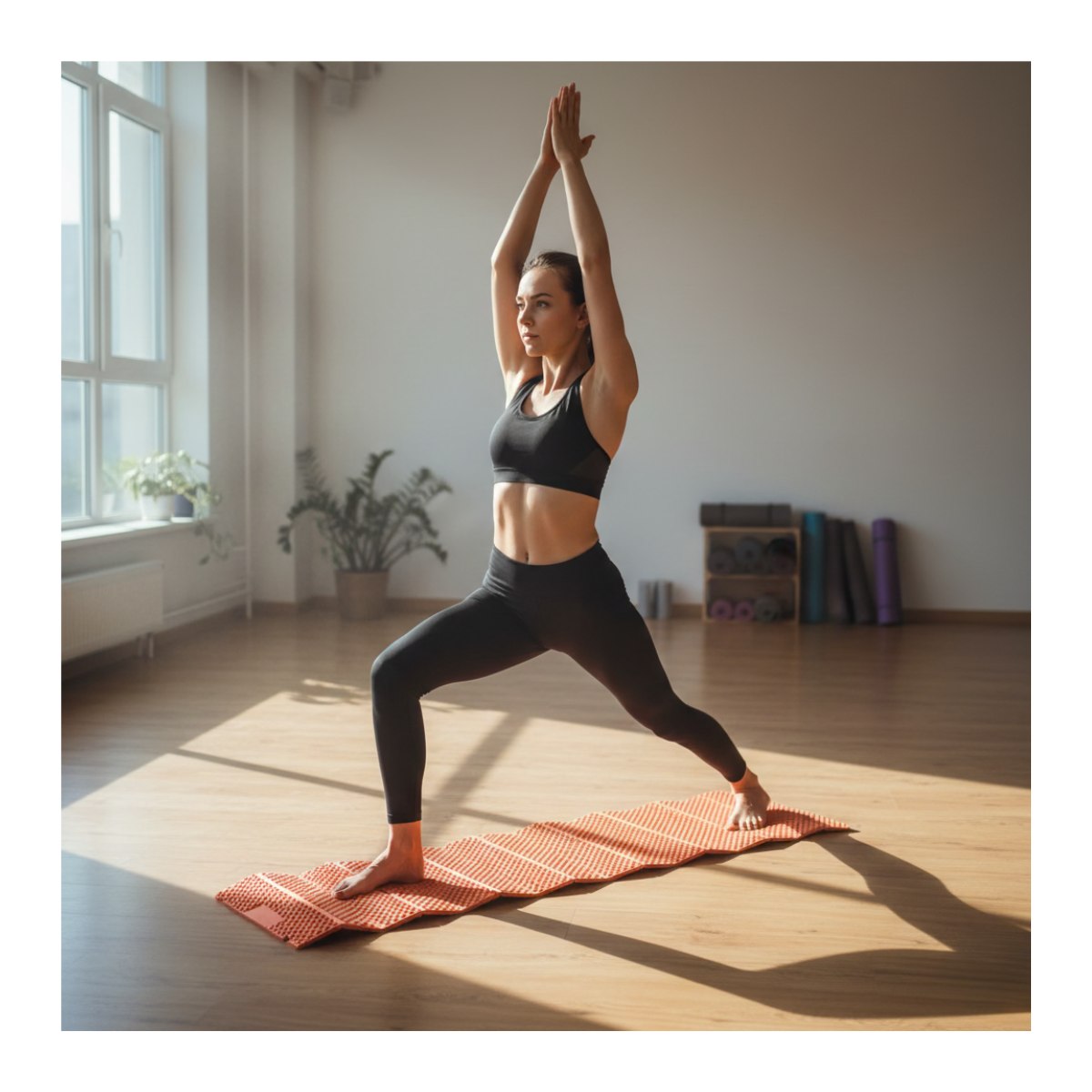 Gracias a su formato plegable tipo acordeón, se transporta y guarda fácilmente en mochilas o equipaje, ocupando poco espacio. La textura en relieve ayuda a mantener estabilidad durante el uso, incluso en terrenos irregulares.