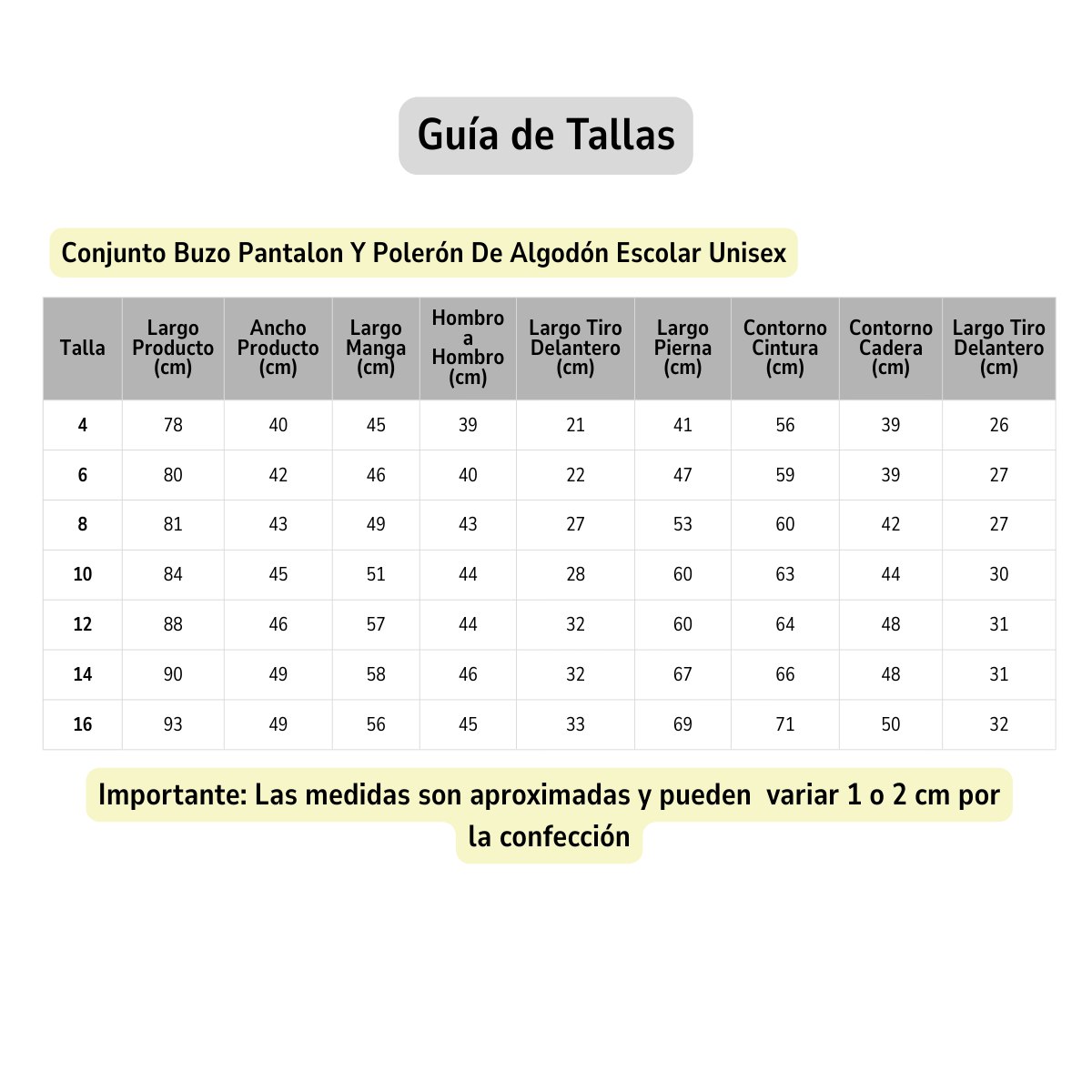 Conjunto Buzo Escolar Unisex de Algodón – Pantalón + Polerón