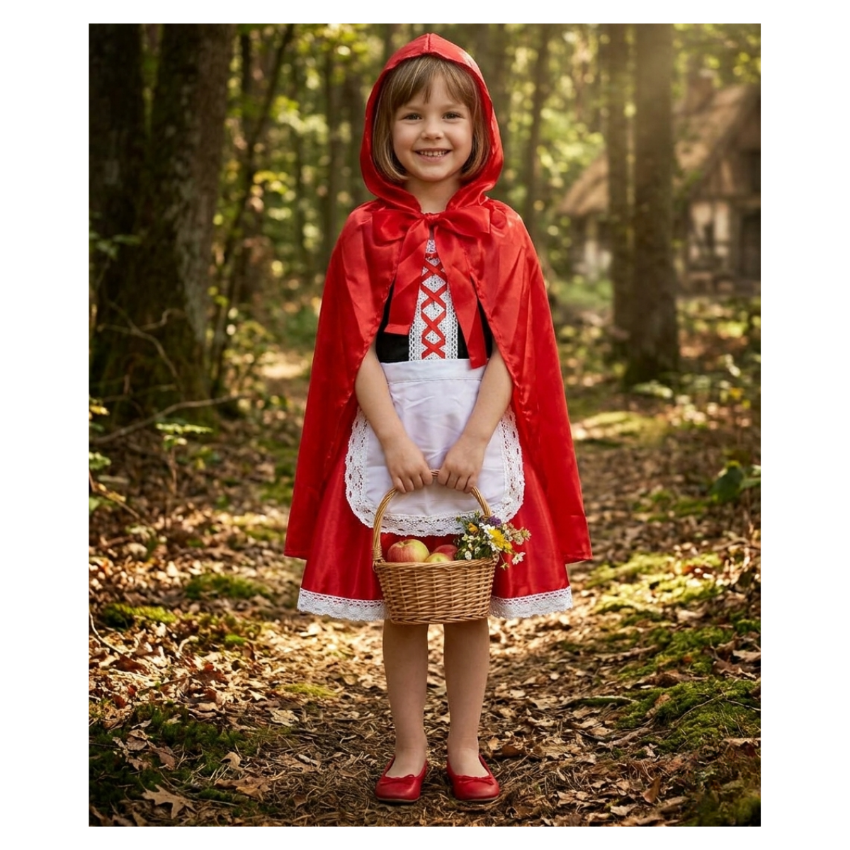 Traje De Caperucita Roja Con Encaje Y Capa Roja Brillante