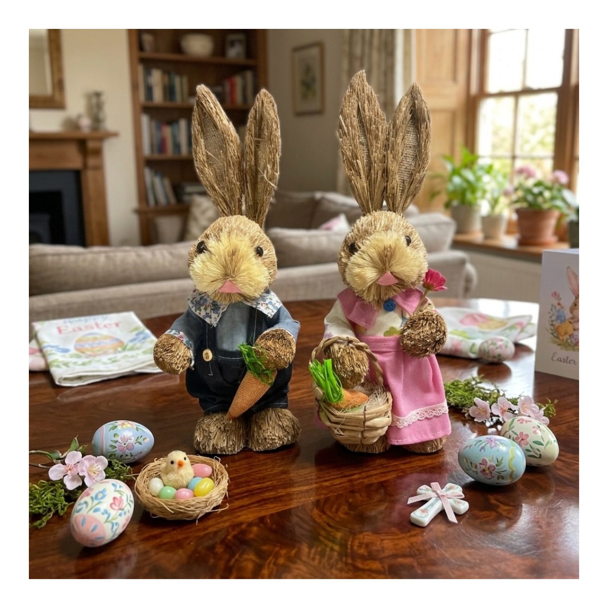 Set de Conejos Decorativos 35 cm – Estilo Natural y Elegante